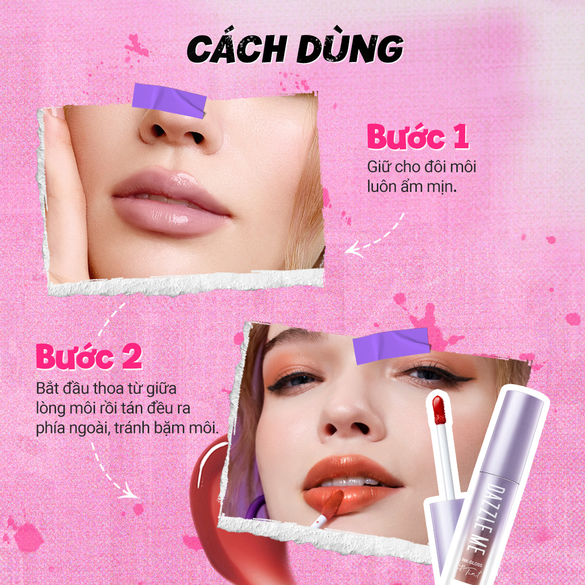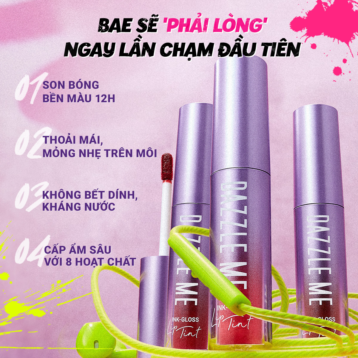 💞 DAZZLE ME Ink-Gloss Lip Tint 2.5ml Son bóng lì màu 12 giờ Inkfinite 💞